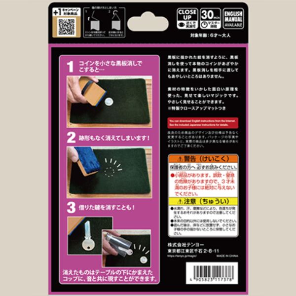 Just like erasing chalk from a slate, you can use the gimmicked eraser to visually remove real coins from existence. A beautifully designed effect that relies on clever construction rather than sleights. Deceptive, engaging, and wonderfully easy to perform.