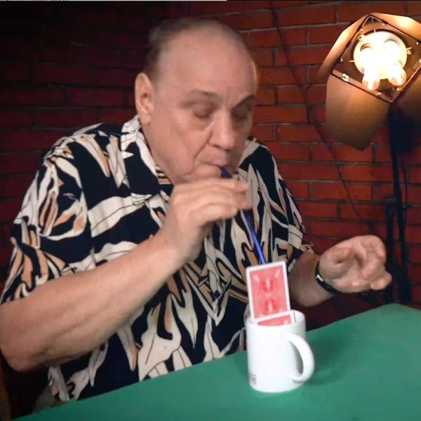 Then, in a completely impossible and hilarious moment, you use a simple straw to “sip” the deck and visibly extract their signed card.