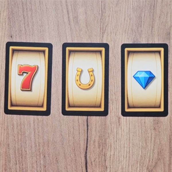 A spectator freely chooses one of five slot-machine symbol cards, hoping for a big win… and, of course, ends up with the worst possible choice. The moment gets laughs, groans, and instant connection as they blame their luck.