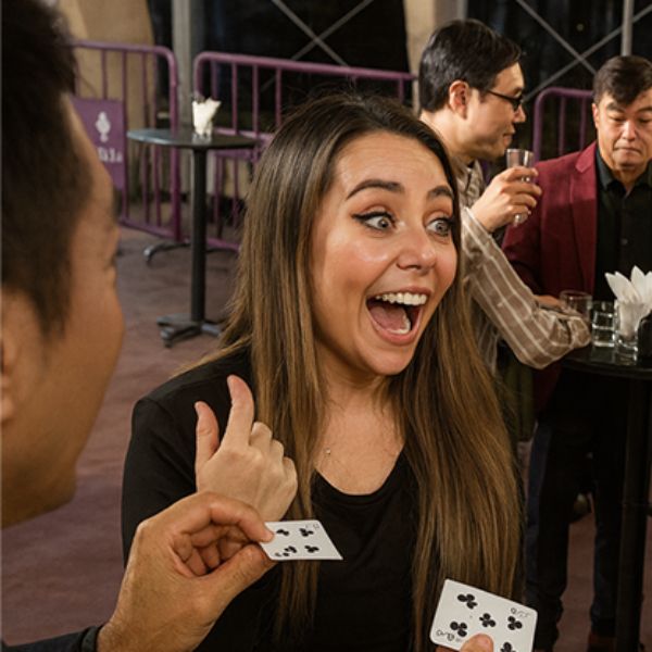 With a moment of magic, the torn halves restore themselves. But not to their original cards. Instead, each restored card now combines one half from each spectator making a perfect fusion of their signed pieces.