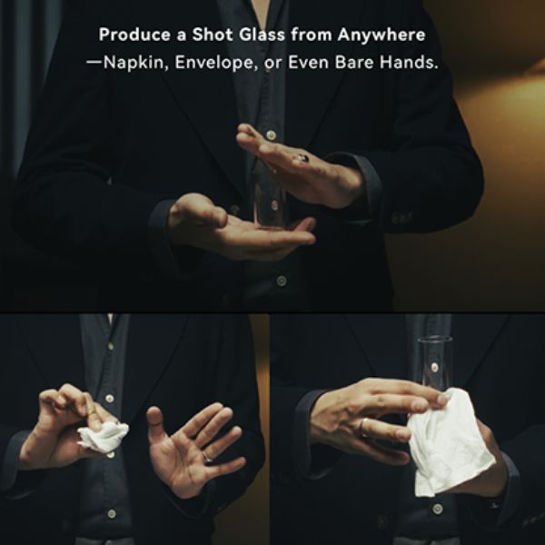 Imagine producing a real shot glass from a napkin, an envelope or even your bare hands.