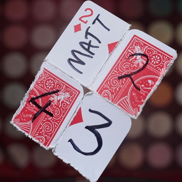 A playing card is freely and openly torn into four pieces. No sleights. No palming. No funny moves. The pieces are clearly shown and handed to the spectators.